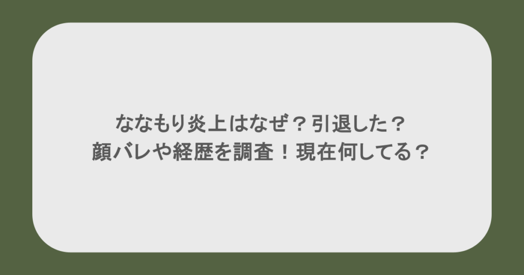 ななもり炎上はなぜ?引退した?顔バレや経歴を調査!現在何してる?